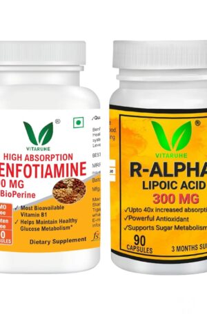VitaRuhe R-Alpha Lipoic Acid 300mg & Benfotiamine 300mg – Pack of 2 Bottles Combo, Antioxidant Support & Neuropathic Health, 90 Capsules Each