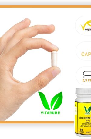 VITARUHE® Hyaluronic Acid Capsules High Dosage, 300 mg Per Capsule, Vegan, Low Molecular 500-700 kDa, 90 Capsules